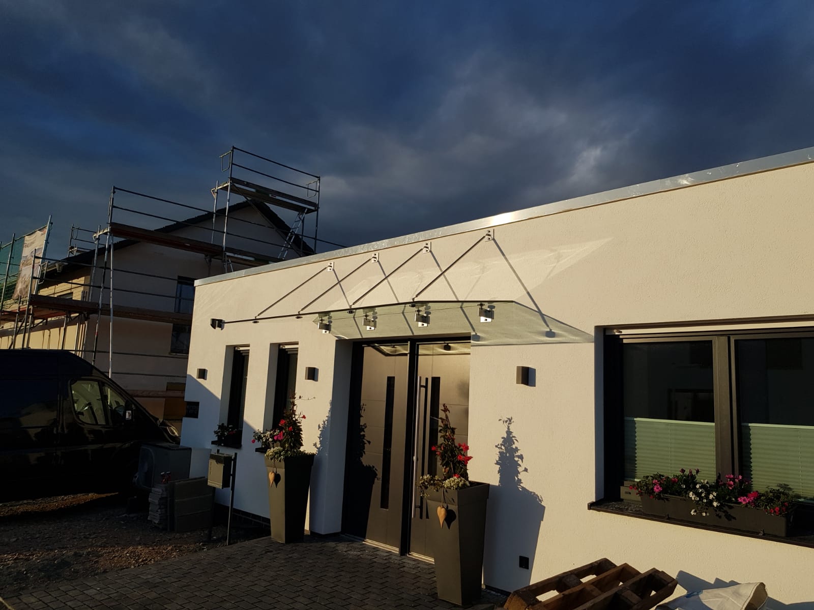 Ein Vordach am Hauseingang bringt verschiedene Vorteile mit sich. Allen voran bietet es Ihnen und Ihren Besuchern, einen hervorragenden Schutz vor Witterungseinflüssen. Wie Schnee, Regen und Hagel. Kombiniert mit Seitenelementen lässt sich der Wetterschutz des Vordachs noch weiter erhöhen. Sinnvoll ist dies zum Beispiel an sehr exponierten Stellen. Neben dem Schutz vor Witterungseinflüssen wertet ein Glas-Vordach am Hauseingang die Optik der Immobilie auf.
