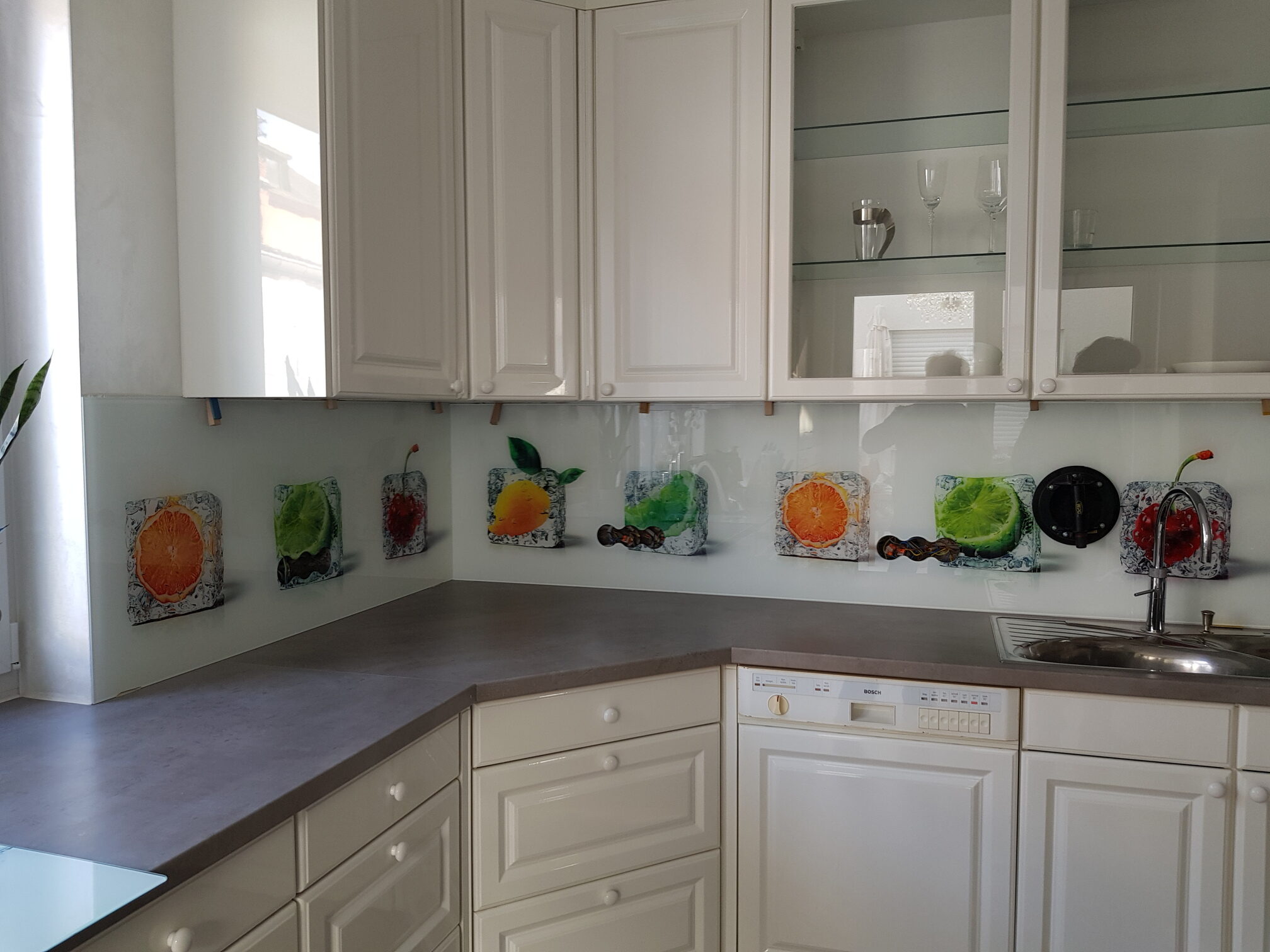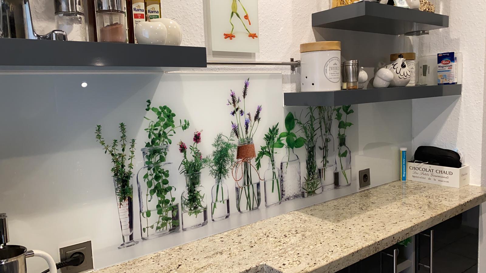Zu den vollflächig lackierten Scheiben, bietet wir Ihnen auch Glasbilder auf der Küchenrückwand an. Ein solches Glasbild in der Küche mit umfangreiche Gestaltungsoptionen ganz nach Ihrem persönlichen Geschmack. Finden auch Sie bei uns das ideale Motiv hinter Glas.